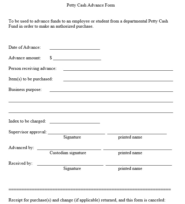 Petty Cash Advance Form 4 - Printable Samples